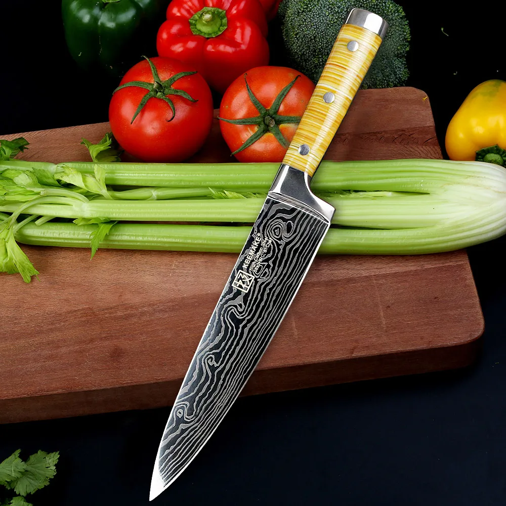 BEST QUALITY SUNNECKO 8" inch Kitchen Chef Knife Real Shell Handmade Handle with Mosaic Rivet High Carbon Steel