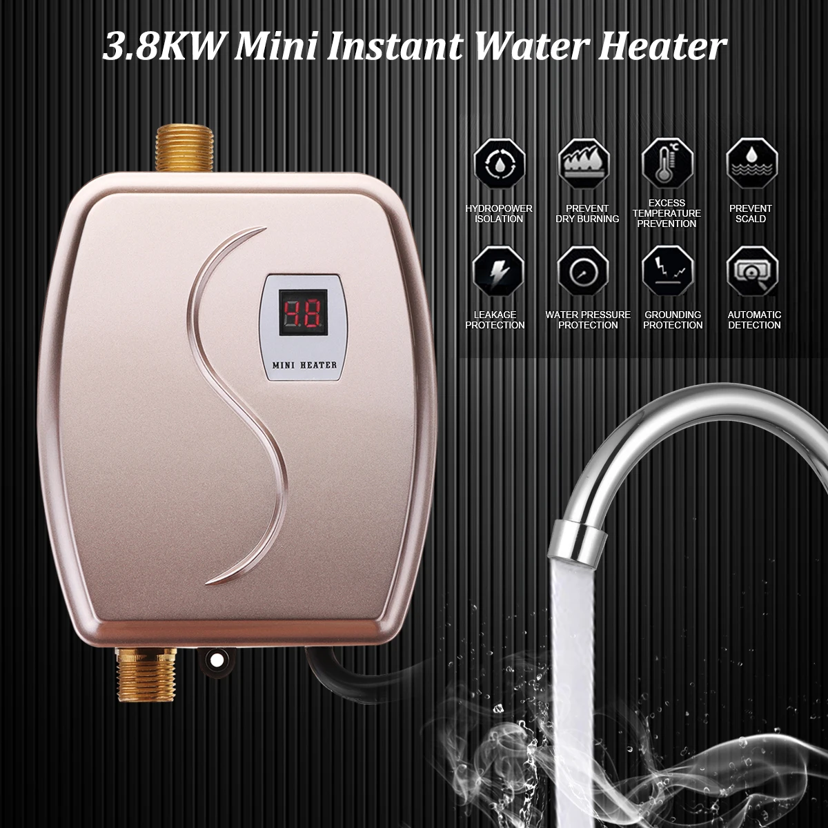 BEST QUALITY Water Boiler Electric Water Heater 3800W Mini Instant Heating LED Display Electric Hot Water Heater