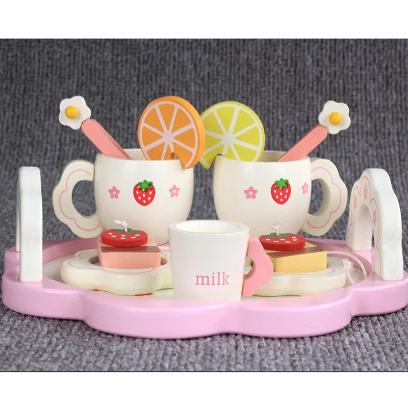 Wooden Mini Tea Set Toy Cup Teapots Tray for Children Kids Kitchen Role Playing Game OCT998