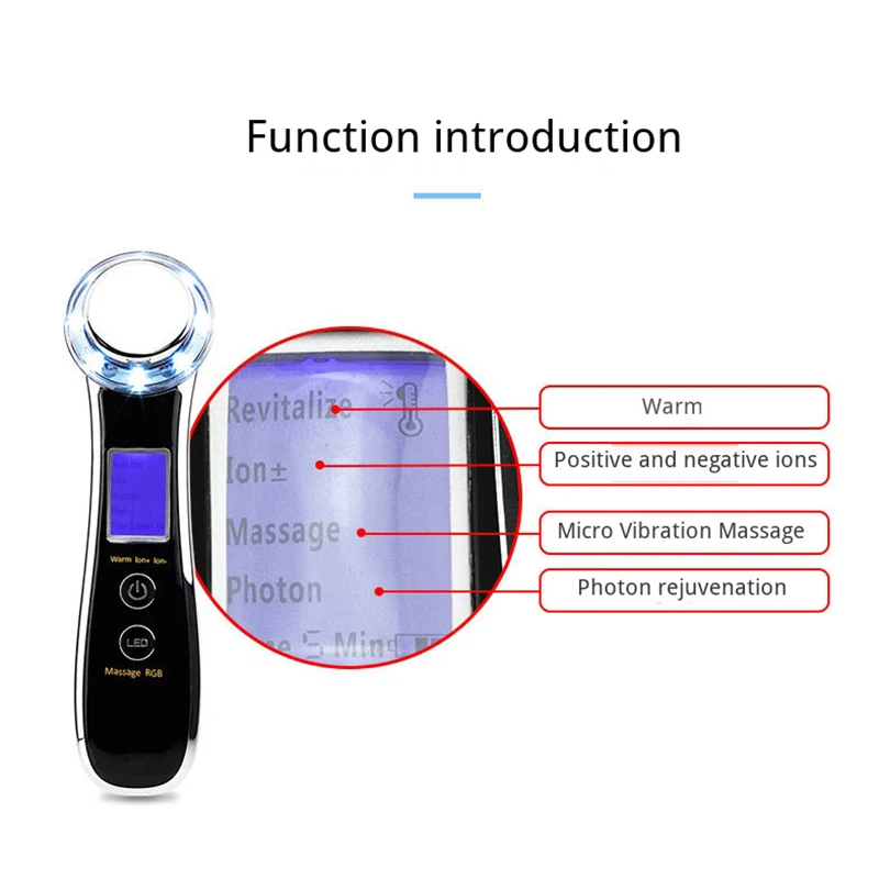 LED Light Photon Beauty Device Face Heating Micro Vibration Massage Ion Introducing Skin Rejuvenati