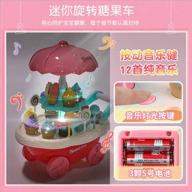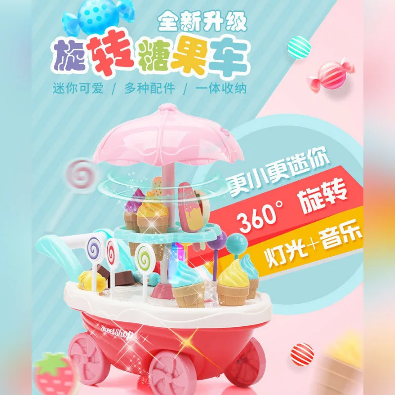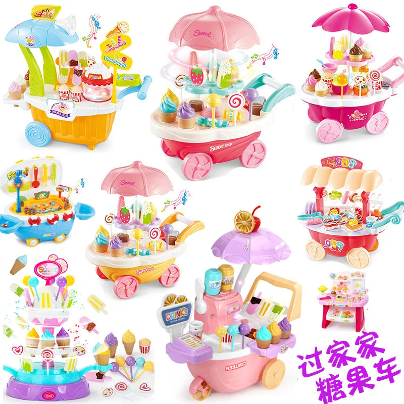 Children Model Kitchen Tableware Cartoon Candy Ice Cream Toy Play House Cart Set