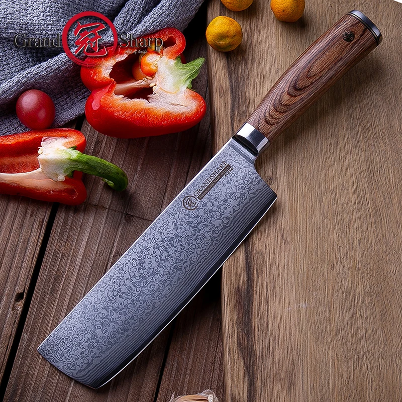 HIGH QUALITY GRANDSHARP Damascus Kitchen Knives Japanese Nakiri Knife vg10 Japan Damascus Steel Vegetables Tool