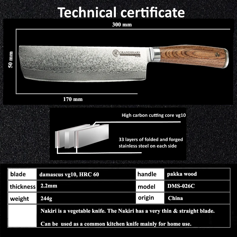 Review GRANDSHARP Damascus Kitchen Knives Japanese Nakiri Knife vg10 Japan Damascus Steel Vegetables Tool
