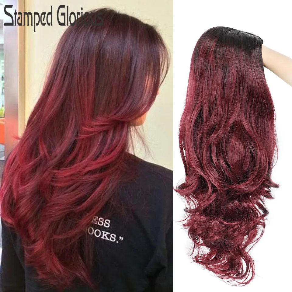 Stamped Glorious 24inches Wave Wig Ombre Black Red Wig Synthetic Long Wig for Women Middle Part Hea