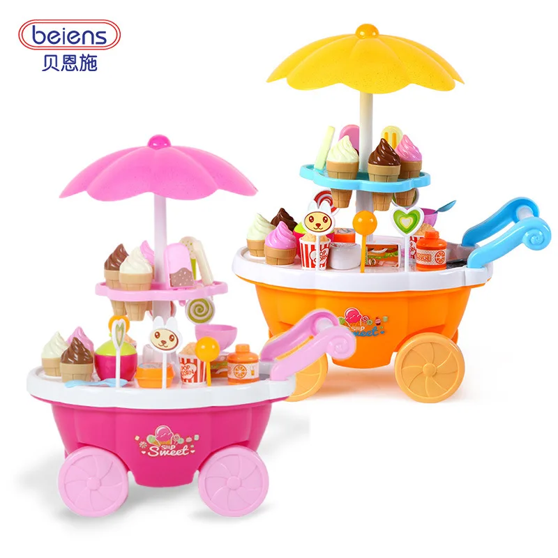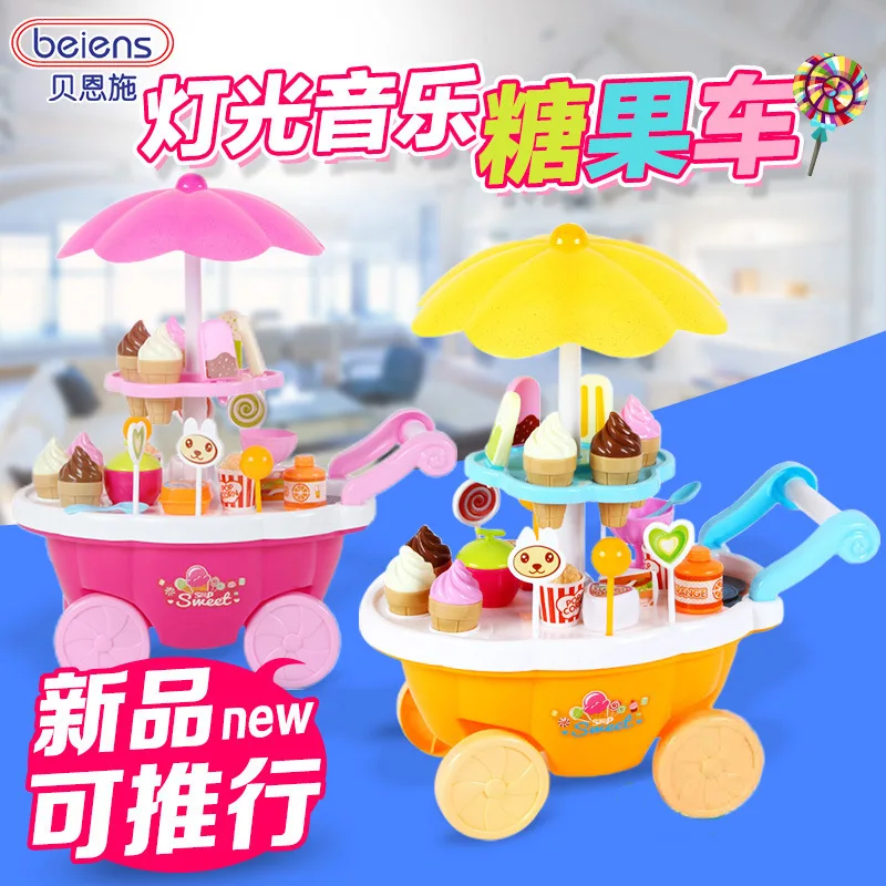 Hot Sale Genuine Product Beiens Play House Kitchen Toy Mini Ice Cream Candy Car Model Cart Light Included Li